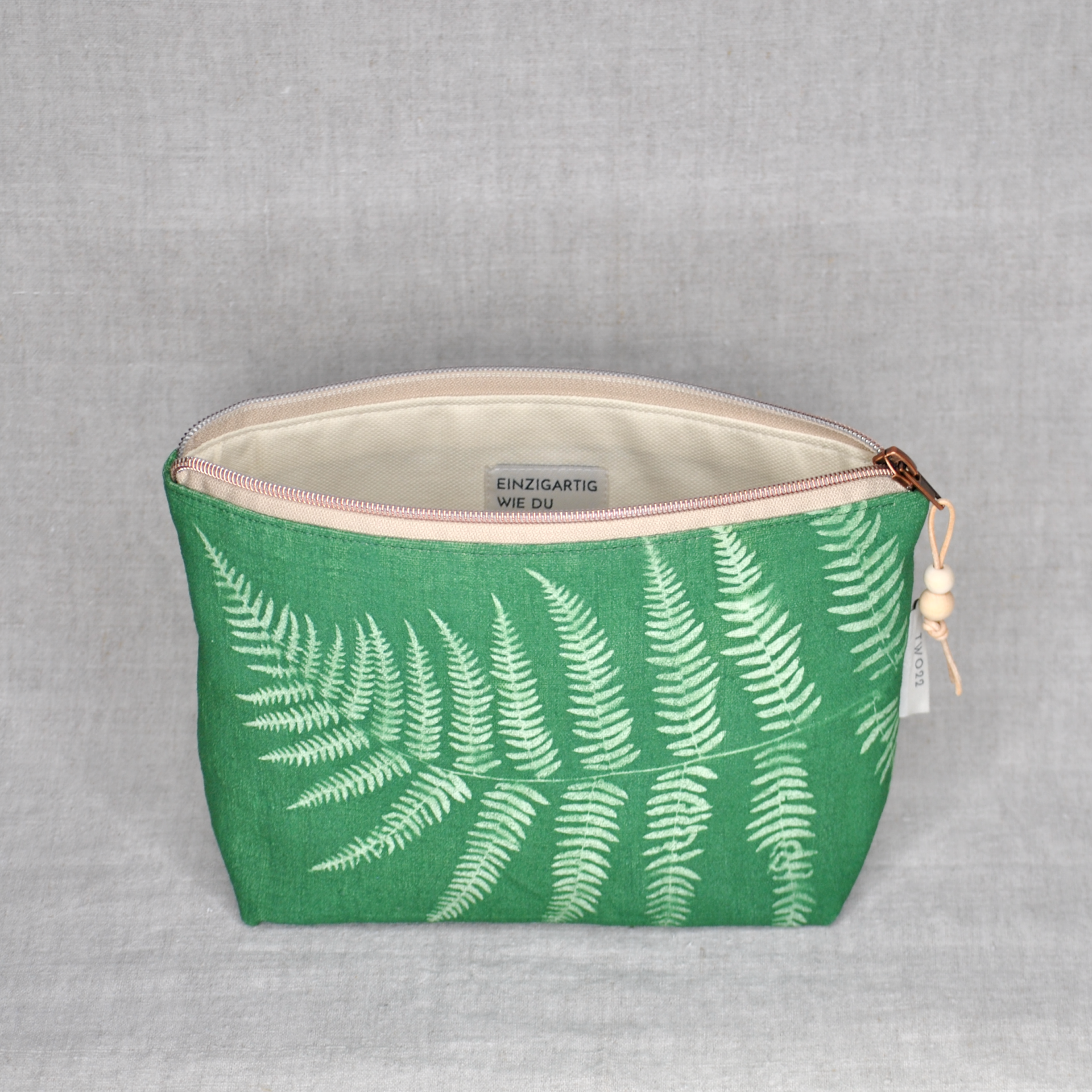 Kosmetiktasche mit Farnprint Größe L - Grün