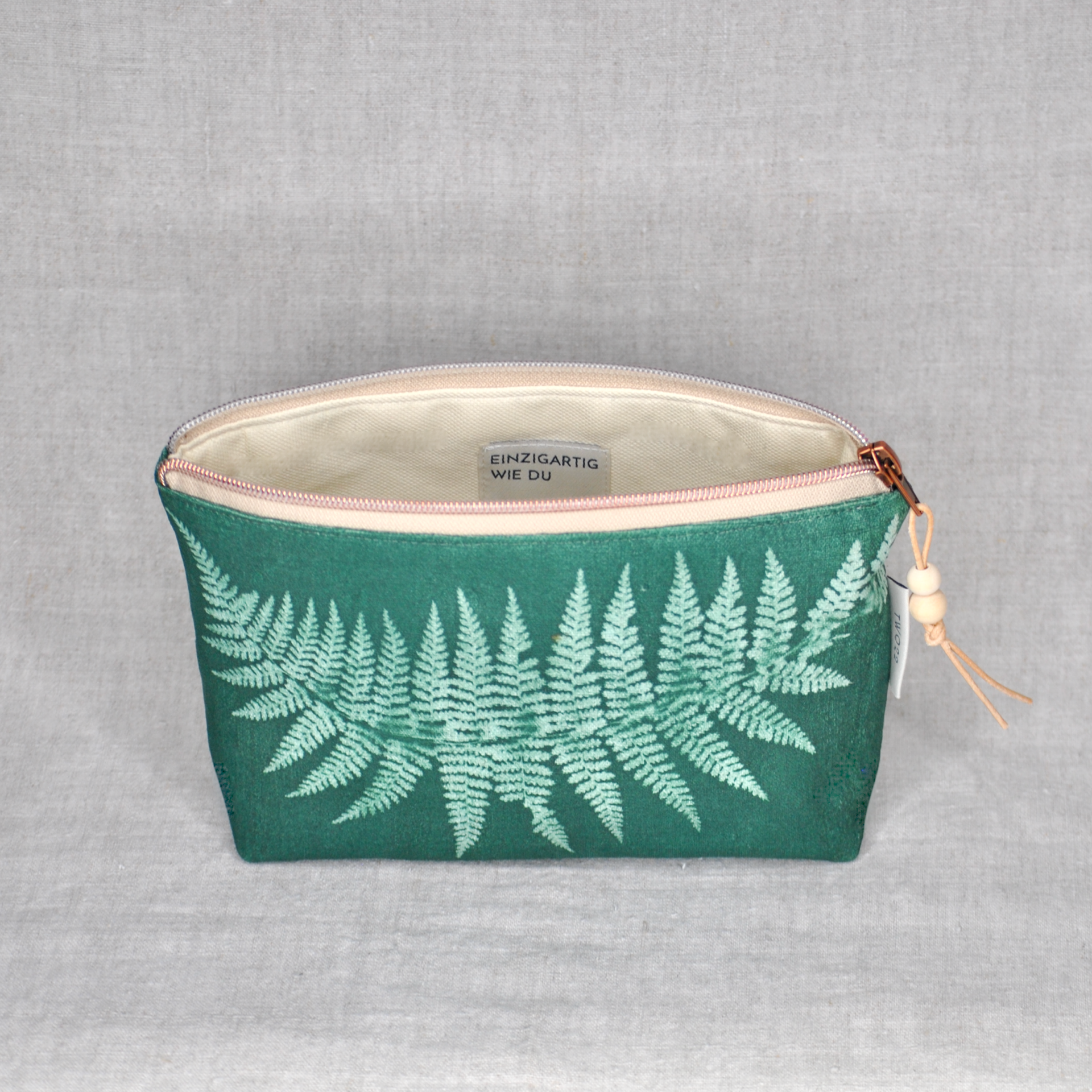 Kosmetiktasche mit Farnprint Größe M - Grün