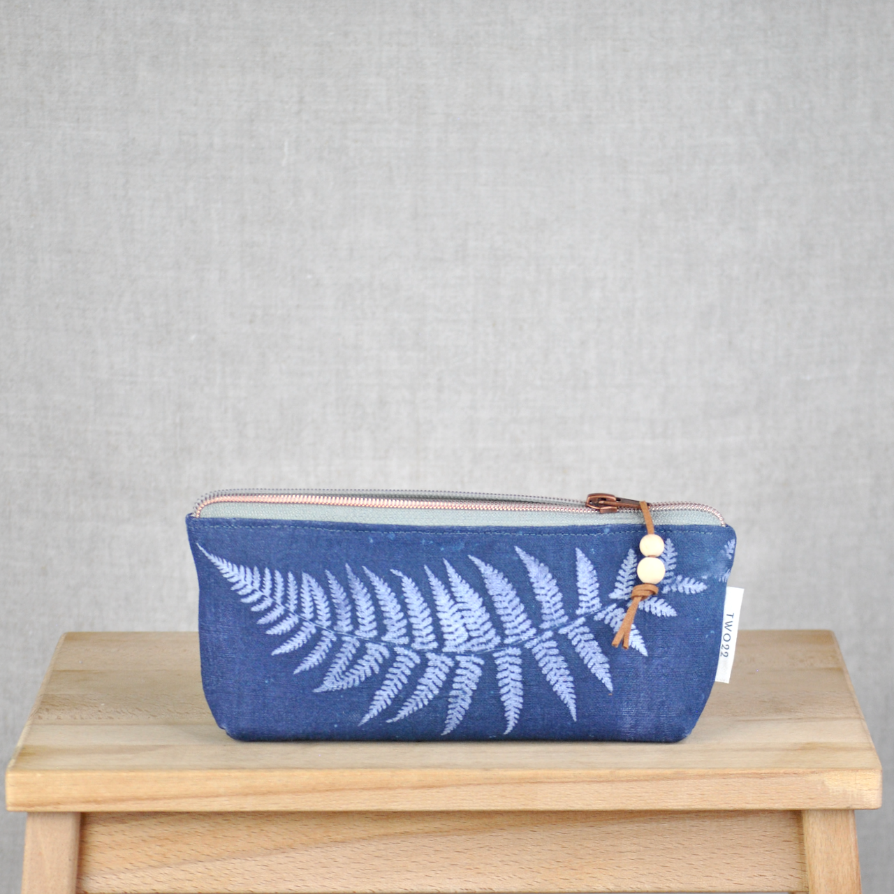 Einzigartig wie du – Handbedrucktes Täschchen aus antikem Leinen mit natürlichem Farnprint