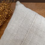 Dieses Kissen aus antikem Getreidesackleinen verbindet rustikalen Charme mit zeitloser Authentizität. Das robuste Material ist hervorragend erhalten und trägt zugleich die feinen Spuren seines Alters – Zeichen, die seine Einzigartigkeit und Geschichte sichtbar machen.