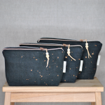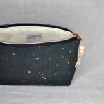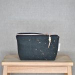 Handbedrucktes Tupfenmuster in schimmerndem Bronzeton auf schwarz gefärbtem Leinen. Mit seinem einzigartigen Print ist CELIA eine hübsche Geschenkidee zu Weihnachten und bringt die Augen der Beschenkten bestimmt zum Leuchten.