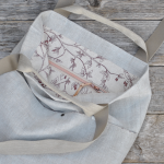 Besonders ist das hierbei verwendete Material: antikes Bauernleinen, handgewebt vor ca. 80-100 Jahren, trägt Geschichte vergangener Zeiten in sich. Der natürliche graue Farbton des ursprünglichen Leinens ist bei dieser Tasche erhalten geblieben. Mit seiner dicht gewebten feinen Struktur ist die Tasche stabil und hat dabei einen angenehmen weichen Griff.