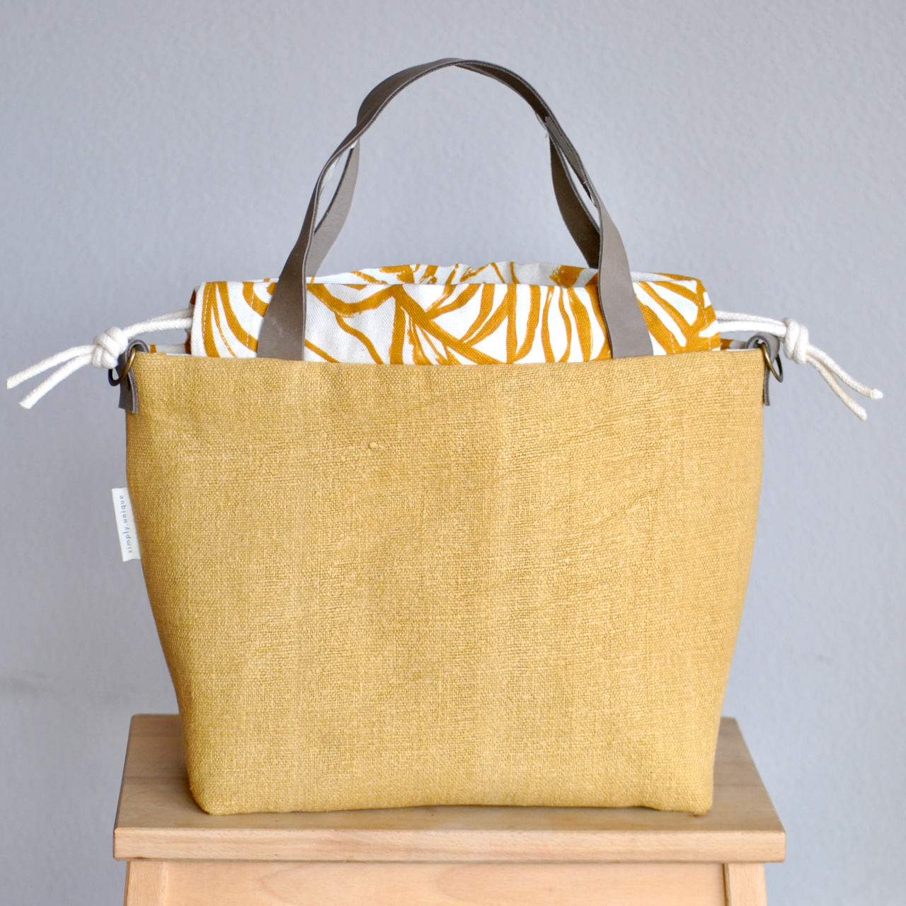 Das antike Bauernleinen, aus dem die Tasche gefertigt ist, wurde vor etwa 80–100 Jahren handgewebt. Die charakteristische, lebendige Struktur und der angenehm weiche Griff machen dieses Material zu etwas ganz Besonderem. Die Färbung in kräftigem Senfgelb verleiht dem traditionellen Stoff einen modernen, ausdrucksstarken Akzent.