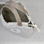 Das antike Bauernleinen, das für diese Tasche verwendet wird, wurde vor 80-100 Jahren handgewebt. Dieses Material zeichnet sich durch seine feste Struktur mit Fischgrätwebung aus hat dabei einen angenehm weichen Griff.