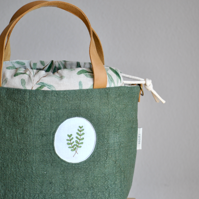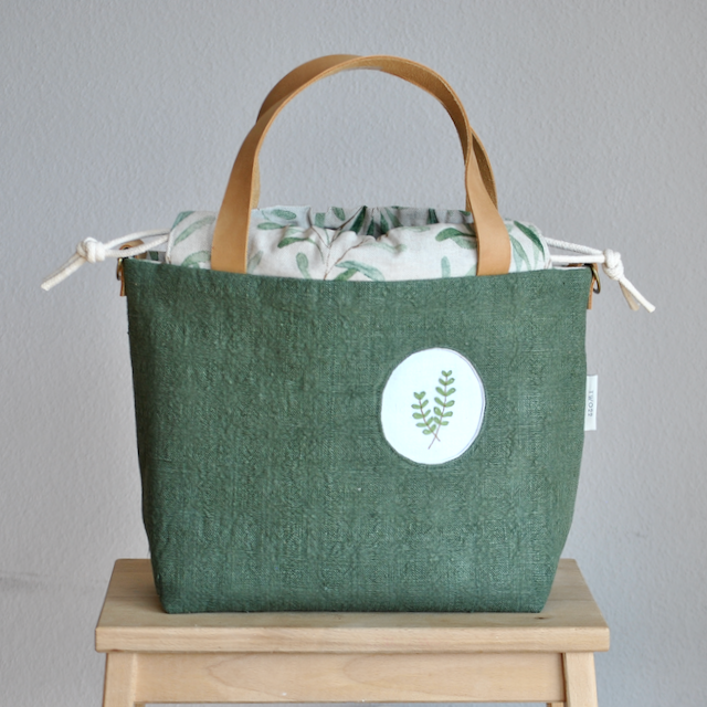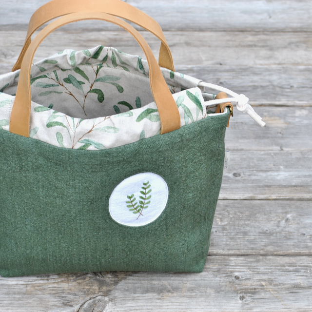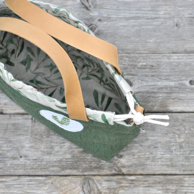 Projekttasche GRETA Olivgrün mit Stickmotiv