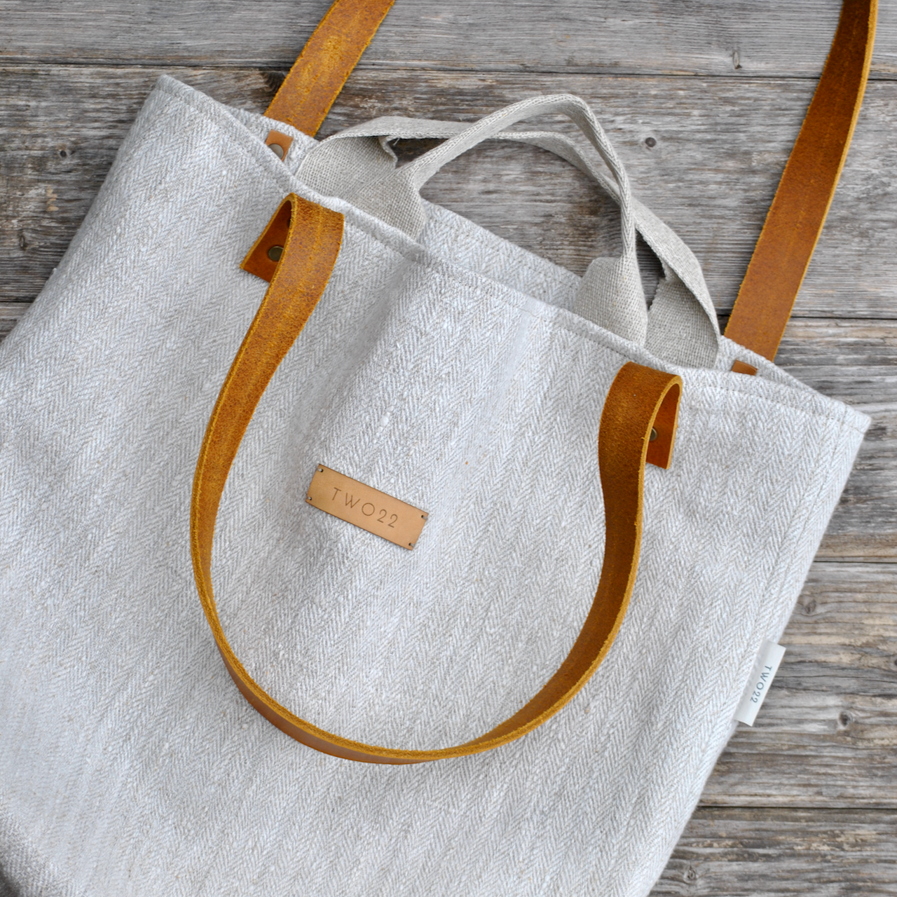Das robuste Leinen überzeugt durch seine markante Textur und den natürlichen Look, der das ursprüngliche ländliche Leben authentisch widerspiegelt. Die festen Lederriemen schmiegen sich mit der Zeit geschmeidig an und verleihen der Tasche einen eleganten, getragenen Charakter.