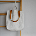 Das handgewebte Sackleinen dieser Tasche stammt aus einem Leinenballen, der über viele Jahrzehnte erhalten blieb. Dieses Material ist von robuster Qualität und zeichnet sich durch seine feste Webung mit einer schönen Fischgrätstruktur aus. Dennoch ist das Leinen sehr leicht und hat einen angenehm weichen Griff.