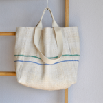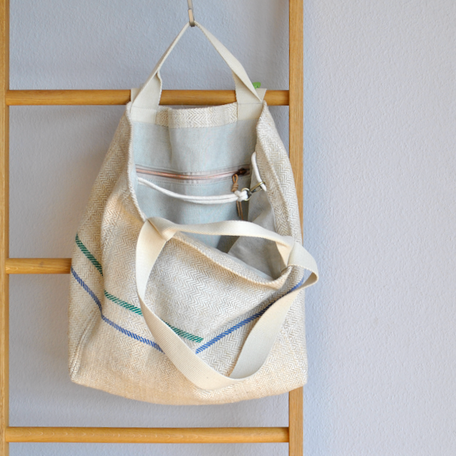 Der XL-Shopper 'Olivenhain' ist inspiriert von der ruhigen Schönheit mediterraner Olivenhaine. Der helle, beige Leinenstoff in feiner Fischgrätwebung wird durch das eingewebte grüne und blaue Streifenmuster lebendig – Farbnuancen, die an sonnenwarme Landschaften, Olivenzweige und klare Himmel erinnern.